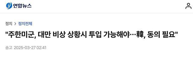 如果未来有一天,美方真的将相关政治协议摆到韩国总统的办公桌上,明说要调动驻韩美军干预台海事务,要求韩国听从安排,韩方大概率就是讨价还价一番,争取以政治同意,换取少交驻军费。